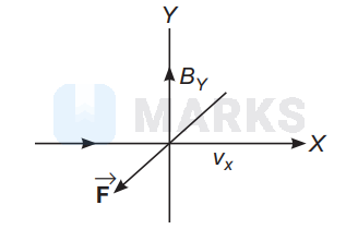 \overrightarrow{\mathbf{F}}=e v_{x} B_{y}(\hat{\mathbf{i}} \times \hat{\mathbf{j}})=e v_{x} B_{y} \hat{\mathbf{k}}