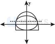 As you can see from the figure the ellipse touches the circle for same value of $y$ so the roots of the eqaution are equal $\therefore \mathrm{D}=0$ $4 \mathrm{~b}^{2}-4\left(1-\frac{\mathrm{a}^{2}}{\mathrm{~b}^{2}}\right)\left(\mathrm{a}^{2}+\mathrm{b}^{2}-\mathrm{r}^{2}\right)=0$ $\mathrm{r}^{2}=\frac{\mathrm{a}^{4}}{\mathrm{a}^{2}-\mathrm{b}^{2}}$ $\Rightarrow \mathrm{b}=\mathrm{a} \sqrt{1-\frac{\mathrm{a}^{2}}{\mathrm{r}^{2}}}$ Area of ellipse $=\pi \mathrm{ab}$ $\mathrm{A}=\pi \times \mathrm{a} \times \mathrm{a} \sqrt{1-\frac{\mathrm{a}^{2}}{\mathrm{r}^{2}}}$