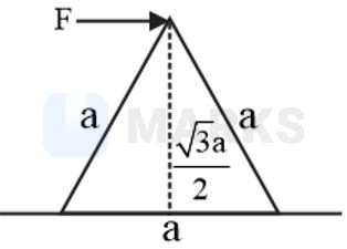 An equilateral prism of mass rests on a rough horizontal surface, with a coefficient of friction . A horizontal force is applied to the prism, as shown in the figure. If the coefficient of friction is sufficiently high, so that the prism does not slide before toppling, then the minimum force required to topple the prism is