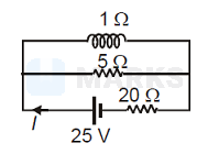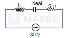 An inductor coil and a capacitor and a resistance of are connected in series to an a.c. source of rms voltage . When the frequency of the source is varied, a maximum r.m.s. current of is observed. If this inductor is connected in parallel with a resistance to a battery of emf and internal resistance , the current drawn from the battery is