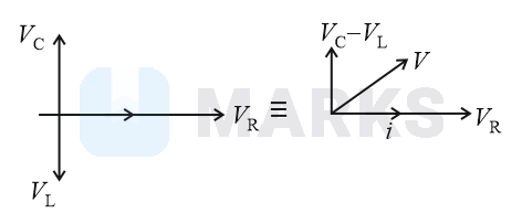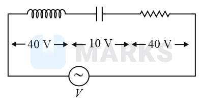 An inductor of inductance , a capacitor of capacitance and a resistor of resistance are connected in series to an ac source of potential difference volt as shown in figure.Potential difference across and is and , respectively. The amplitude of current flowing through series circuit is . The impedance of the circuit is :