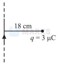 An infinitely long thin straight wire has uniform linear charge density of $\frac{1}{3} \mathrm{Cm}^{-1}$. Then the magnitude of the force acting on a charge $3 \mu \mathrm{C}$ situated at a point of $18 \mathrm{~cm}$ away from the wire is