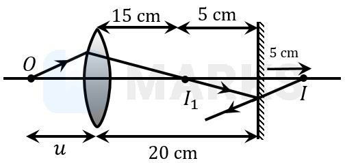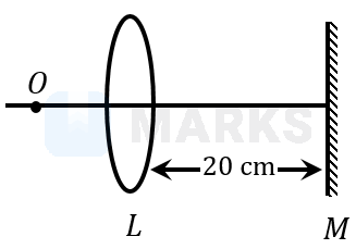 Now, as seen in figure, image from lens is formed at point , whose location is from mirror. Thus, is at from lens.