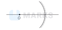 An object $O$ is placed at $7 \mathrm{~cm}$ to the left of a concave mirror of radius of curvature $12 \mathrm{~cm}$ as shown in the figure. The position of the image will be at a distance of