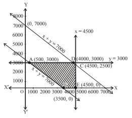 are A $(500,3000)$, B $(3500,0)$, E $(4500,0), C(4500,2500)$,