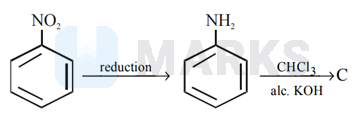 An organic compound (A) on reduction gives compound (B). (B) on treatment with $\mathrm{CHCl}_{3}$ and alcoholic KOH gives (C). (C) on catalytic reduction gives N-methylaniline. The compound A is