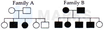Analyze the pedigree chart of families A and B given below and select the correct option.