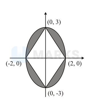 Area (in sq. units) of the region outside and inside the ellipse is
