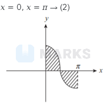 So, required area is given by \( \int_{0}^{\pi} \cos x d x=2 \int_{0}^{\frac{\pi}{2}} \cos x d x \)