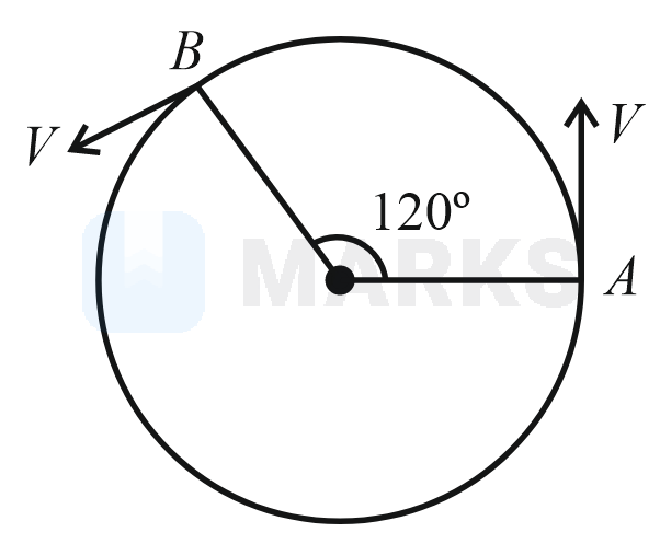 As shown in the figure, a particle is moving with constant speed . Considering its motion from to , the magnitude of the average velocity is: