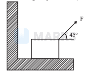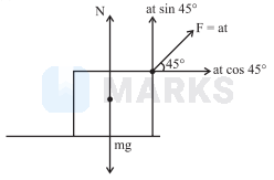 At the moment $\mathrm{t}=0$, a time dependent force $\mathrm{F}=$ at (where a is constant equal to $1 \mathrm{Ns}^{-1}$ ) is applied to a body of mass $1 \mathrm{~kg}$ resting on a smooth horizontal plane as shown in the figure. If the direction of this force makes an angle $45^{\circ}$ with the horizontal, then the velocity of the body at the moment it leaves the plane is