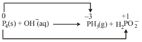 \(\mathrm{P}_4+8 \mathrm{OH}^{-} \longrightarrow 4 \mathrm{H}_2 \mathrm{PO}_2^{-}+4 \mathrm{e}^{-}\) ...(i)