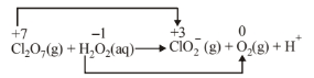 \(\mathrm{Cl}_2 \mathrm{O}_7(\mathrm{~g})+4 \mathrm{H}_2 \mathrm{O}_2(\mathrm{aq}) \longrightarrow \mathrm{ClO}_2^{-}(\mathrm{aq})+4 \mathrm{O}_2(\mathrm{~g})\)
