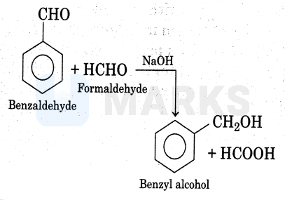 This reaction is known as Cannizzaro reaction, where one molecule of benzaldehyde is reduced to alcohol while formaldehyde is oxidised to carboxylic acid salt. Aldehydes, which do not have an $\alpha$ -hydrogen atom undergo this type of reaction.