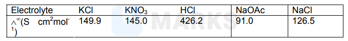$\wedge_{\mathrm{AcOH}}^{\infty}=\wedge_{\mathrm{HCl}}^{\infty}+\wedge_{\mathrm{AcONa}}^{\infty}-\wedge_{\mathrm{NaCl}}^{\infty}$