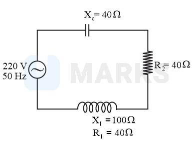 Calculate the power factor of the circuit shown in figure