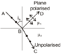 So, $\quad \tan \mathrm{i}_{\mathrm{B}}={ }^1 \mu_2=\frac{\mu_2}{\mu_1}$