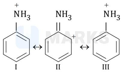 Anilinium ion has two stable canonical structures I and III