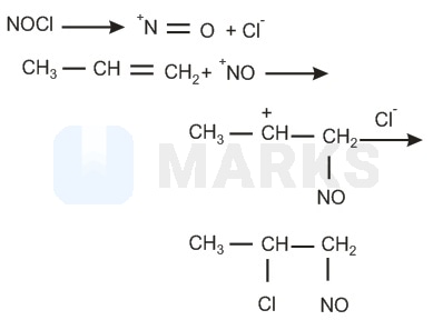 NOCl undergo electrophilic addition on alkene as:
