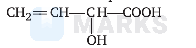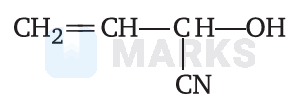 & \mathrm{CH}_2=\mathrm{CHCH}(\mathrm{OH})(\mathrm{CN}) \xrightarrow{\mathrm{H}_3 \mathrm{O}^{+}} \mathrm{CH}_2=\mathrm{CH}-\mathrm{CH}(\mathrm{COOH})(\mathrm{OH})