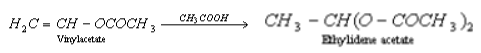 $\mathrm{CH} \equiv \mathrm{CH}+\mathrm{CH}_3 \mathrm{COOH} \xrightarrow{\mathrm{Hg}_{g^{2+}}}$