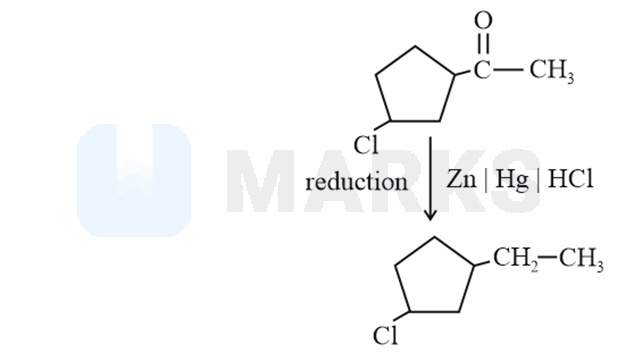 It is clemmensen reduction of carbonyl group in acidic medium, thus other acid sensitive group( like here) also gets affected by acidic medium(changed to ).