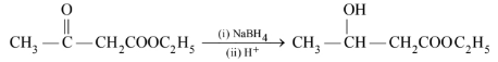 (viii) \(\mathrm{CH}_3 \mathrm{COCH}_2 \mathrm{COOC}_2 \mathrm{H}_5 \underset{\text { (ii) } \mathrm{H}^{+}}{\stackrel{\text { (i) } \mathrm{NaBH}_4}{\longrightarrow}}\)