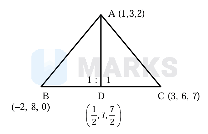 Consider a where and . If the angle bisector of meets the line at , then the length of the projection of the vector on the vector is: