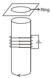 Consider a metal ring kept on top of a fixed solenoid (say on a cardboard) (figure). The centre of the ring coincides with the axis of the solenoid. If the current is suddenly switched on, the metal ring jumps up. Explain.