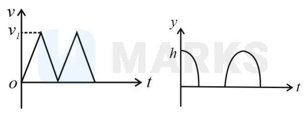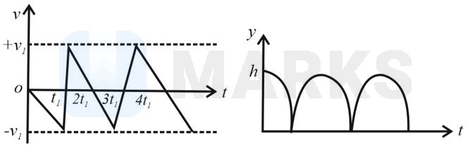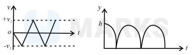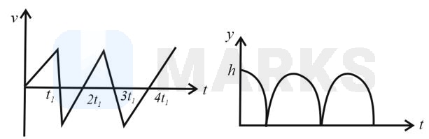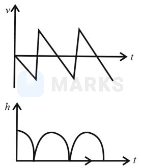 Consider a rubber ball freely falling from a height onto a horizontal elastic plate. Assume that the duration of collision is negligible and the collision with the plate is totally elastic. Then the velocity as a function of time and the height as a function of time will be