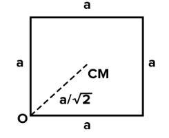 $\Rightarrow \mathrm{I}=\mathrm{I}_{\mathrm{CM}}+m\left(\frac{\mathrm{a}}{\sqrt{2}}\right)^2$