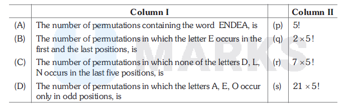 Consider all possible permutations of the letters of the word ENDEANOEL. Match the Statements/Expressions in Column I with the Statements/Expressions in Column II.