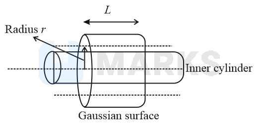 Considering the annular region of the cylindrical capacitor as the Gaussian surface, we have,