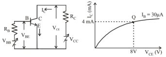 For ouput characteristic at Point Q, Applying Kirchhoff's law in collector emitterloop.