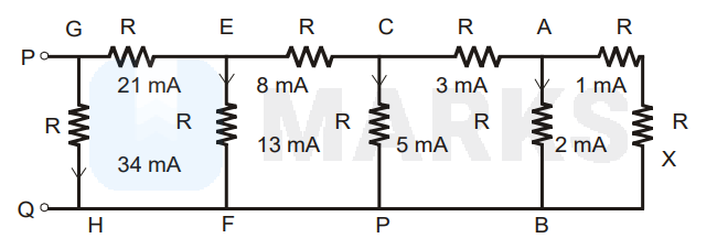 Current through $\mathrm{GH}$ is 34 ma