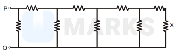 If a current of magnitude $1 \mathrm{~mA}$ flows through the resistor marked $\mathrm{X}$, what is the potential difference measured between point $\mathrm{P}$ and $\mathrm{Q}$ ?