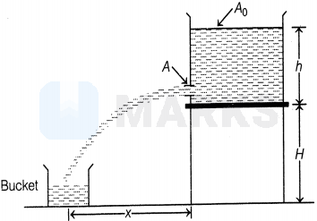 Consider the configuration of a stationary water tank of cross-section area and a small bucket as shown in figure below;