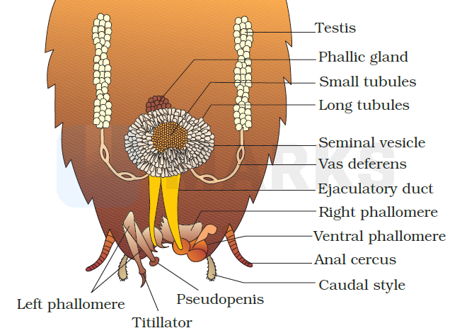| Phallic gland | Vas deferens | Ejaculatory duct | Anal cercus |