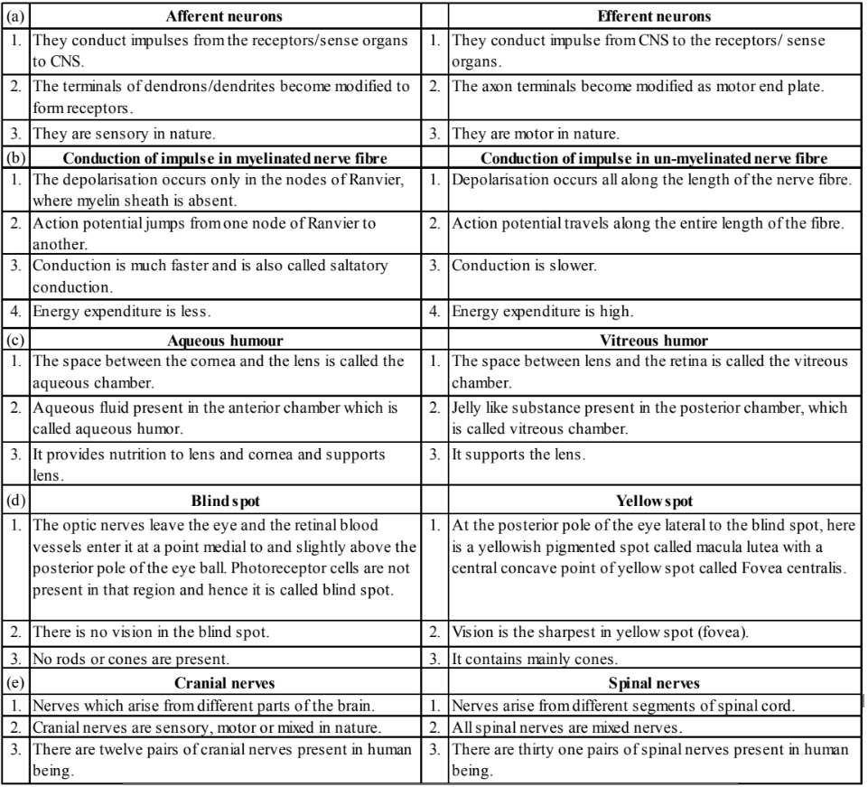 (b) impulse conduction in a myelinated nerve fibre and unmyelinated nerve fibre