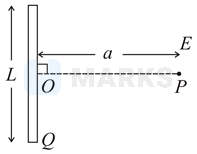 Find the electric field at point (as shown in figure) on the perpendicular bisector of a uniformly charged thin wire of length carrying a charge . The distance of the point from the centre of the rod is