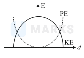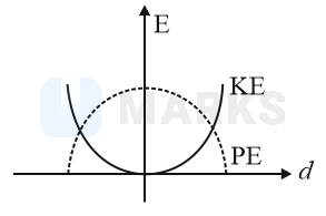 For a simple pendulum, a graph is plotted between its kinetic energy (K.E.) and potential energy (P.E.) against its displacement d. which one of the following represents these correctly? (graphs are schematic and not drawn to scale)
