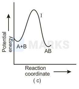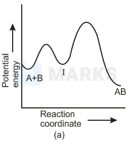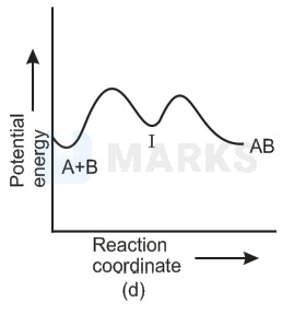 In any reaction mechanism the no. of activated complexes showing maxima of potential energies is the no. of steps in that mechanism and in between these maxima is a valley where lies a more stable intermediate. There is one reaction intermediate lying at valley of two maxima representing two steps. Ea for first step should be higher than second step as first is slow step. These requirements fulfilled by choice (ii) & not choice (i) the choice (iv) is not possible because that is for endothermic reaction & (ii) is single step equation so not possible.