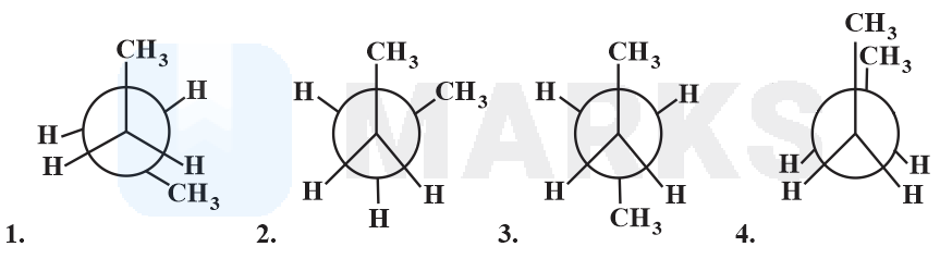 For the following confirmation of n-butane the decreasing order of stability can be given as