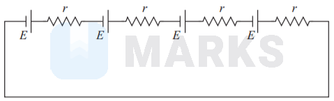 \( \Rightarrow \) equivalent emf \( =2 \mathrm{E} \) and effective internal resistance \( =4 \mathrm{r} \)
