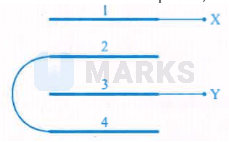 Four metal plates are arranged as shown. Capacitance between \( X \) and \( Y \)