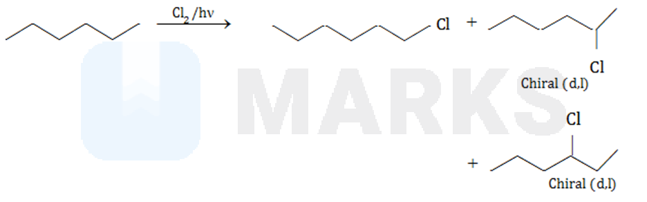 Hexane on single monochlorination gives 3-structural and 2-stereo isomers i.e., total 5 chloro derivatives as follows