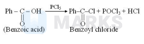 Benzoic acid $\underset{\Delta}{\stackrel{A}{\longrightarrow}}$ Benzoyl chloride + Phosphorous oxychloride + Hydrogen chloride