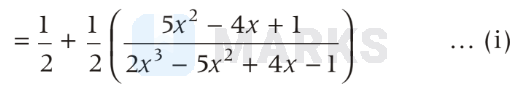 Now, $\frac{1}{2}\left(\frac{5 x^2-4 x+1}{(2 x-1)(x-1)^2}\right)$