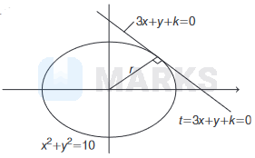 \(\Rightarrow\left|\frac{3 \times 0+0+k}{\sqrt{3^2+12}}\right|=\sqrt{10} \Rightarrow \frac{k}{\sqrt{10}}= \pm \sqrt{10}\)