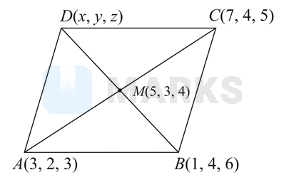 If and are the three vertices of a parallelogram , then the angle between its diagonal through and the side is